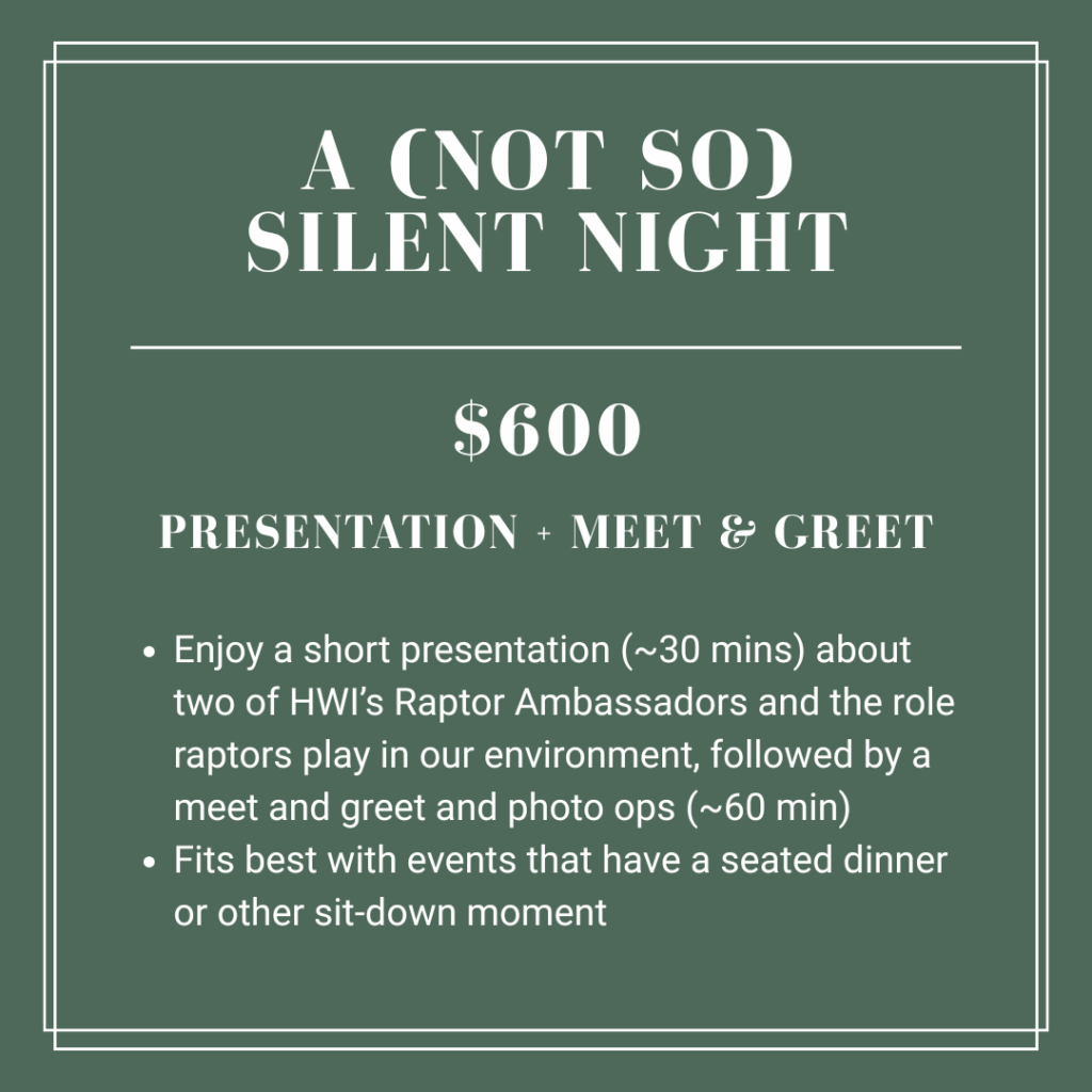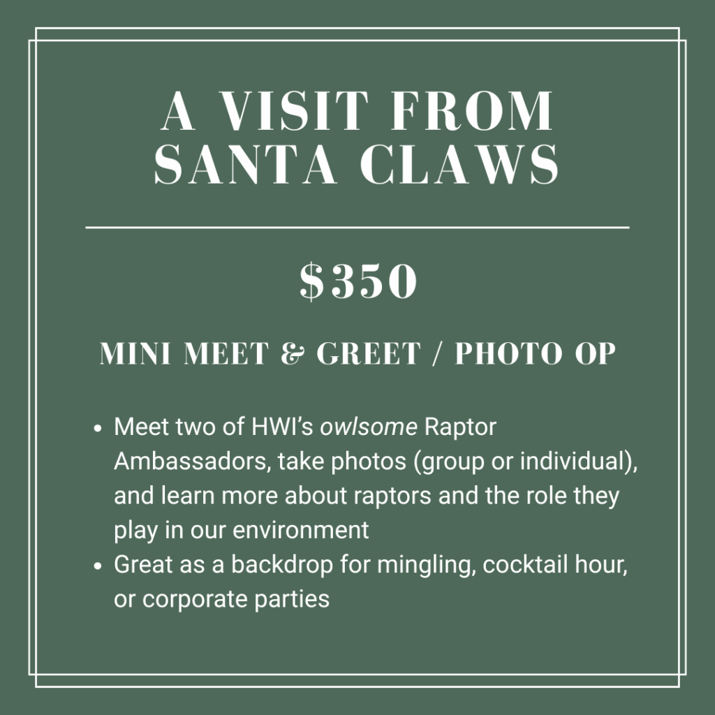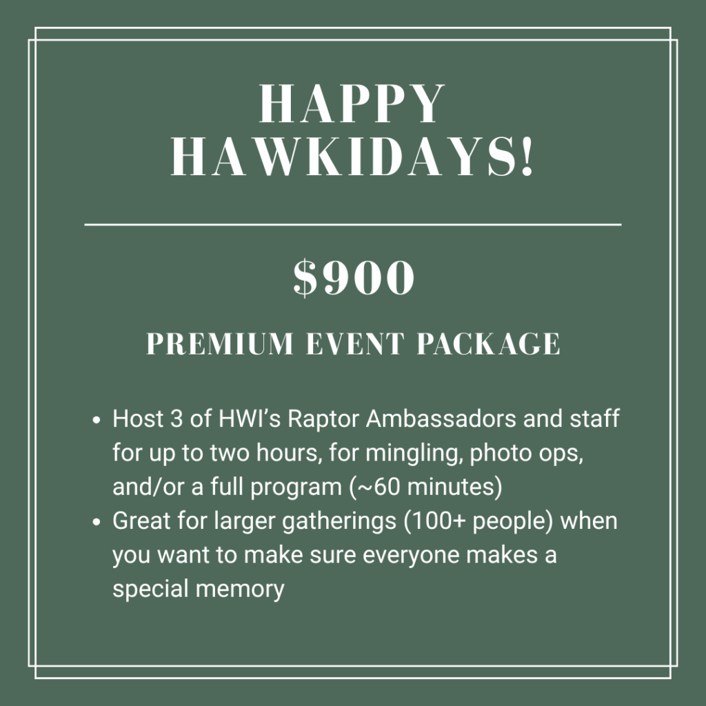 Want to make your upcoming holiday party a bit more owl-some? Invite our Raptor Ambassadors!