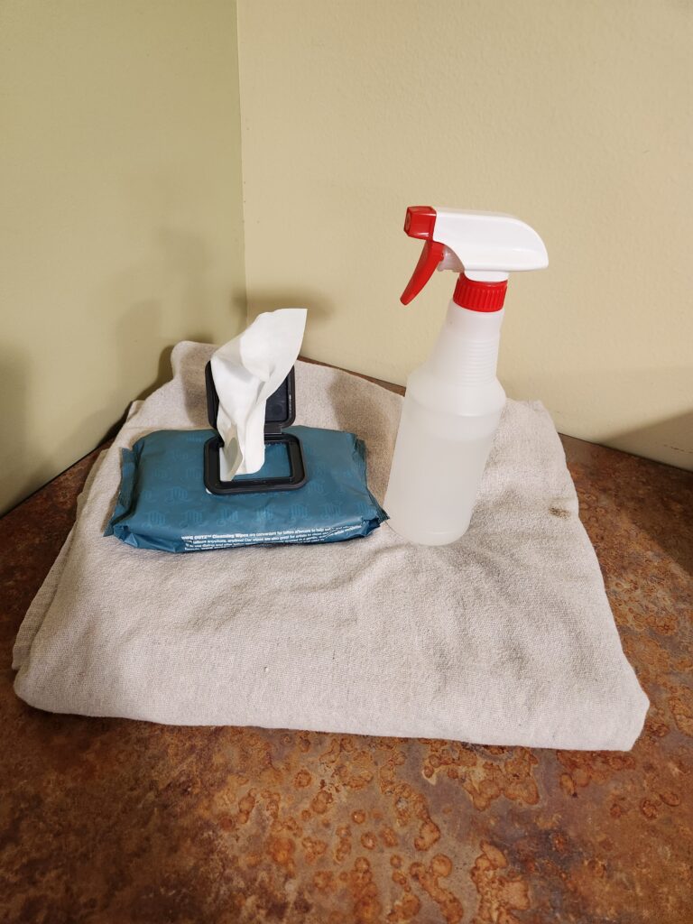 The other two items are heroes because we can’t control the bathroom habits of the birds. When they gotta go, they go. The drop cloth is perfect for catching mutes (a term for bird poop, pee, and urates combined) when we’re standing in one spot. If we walk around with a bird who is ready to relieve themselves, the disinfectant wipes are there to save the day.