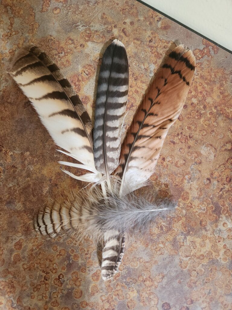 Raptors are not ones for snuggles, and touch is definitely not their love language. That means people don’t get to touch them during programs, but even staff members don’t touch the birds behind the scenes unless it’s absolutely necessary, such as for medical care. Luckily, birds molt feathers throughout the year, so when one of our Raptor Ambassadors molts a feather that is in good condition, we save it to bring to programs. This lets learners get a feel for raptors without upsetting any of the birds.
