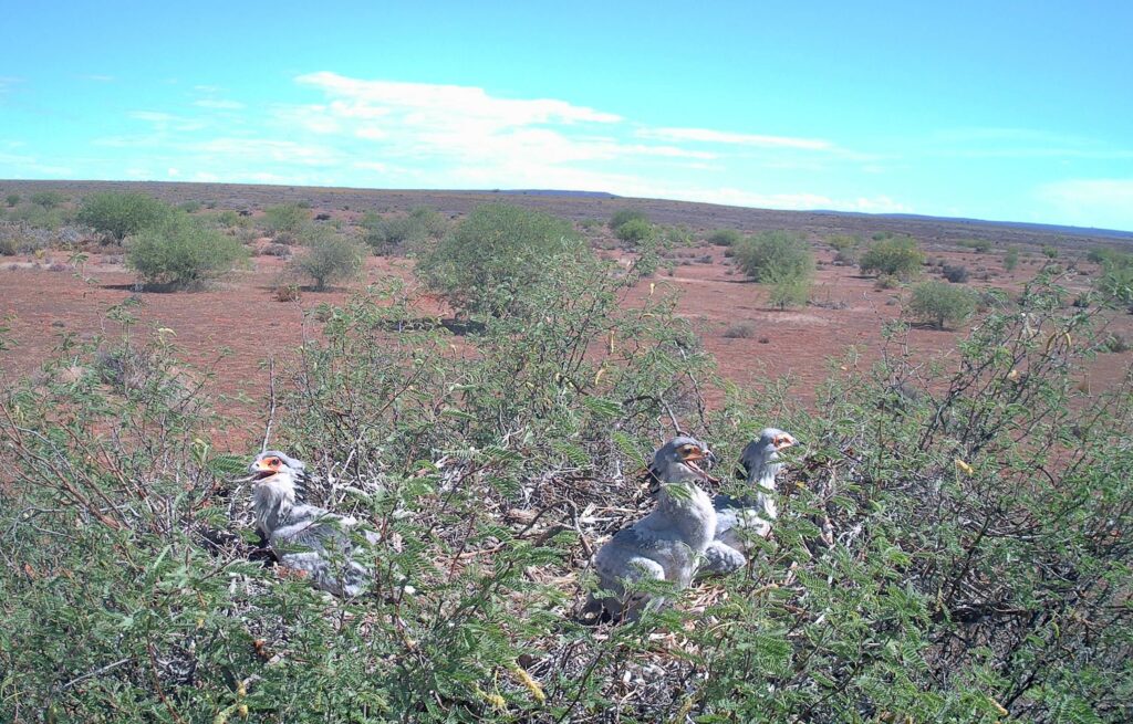 So far, the young at two nests have successfully fledged, while the team expects the chicks at the other nests to fledge over the coming month. That includes one nest that is currently home to three (!) Secretarybirds, the upper limit for the species.